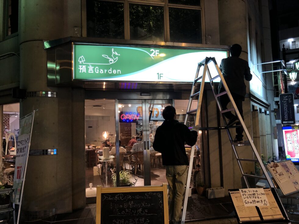 カフェの看板設置ライト付き